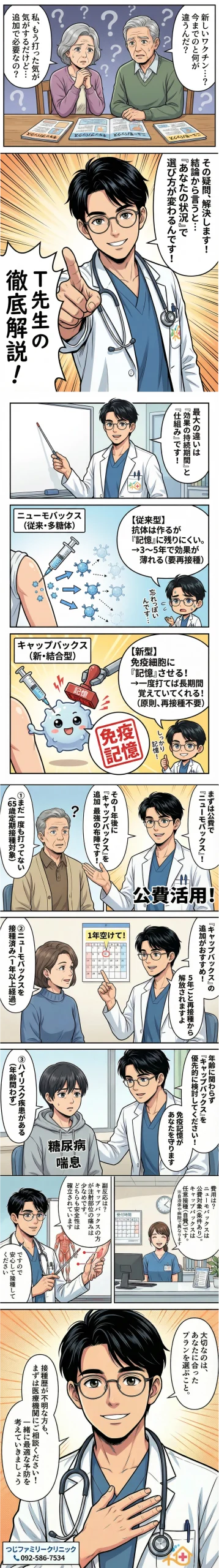 糖尿病・慢性肺疾患などハイリスクの方 → 年齢に関わらず「キャップバックス」を優先的に検討。免疫記憶が形成され、長期間の予防効果が期待できます。
